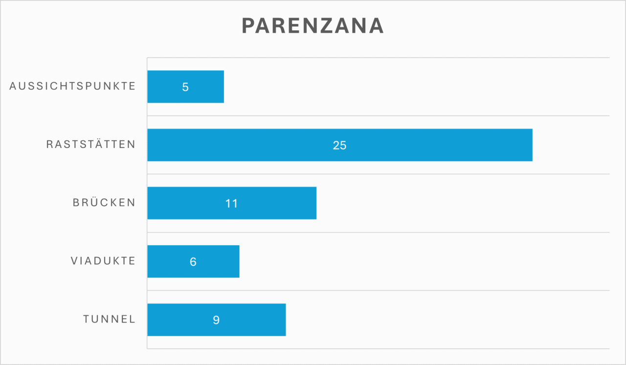 Der tiefste Punkt der Parenzana liegt in Milje und Koper (2 m Höhe), der höchste Punkt in der Nähe von Grožnjan (293 m). Entlang der Strecke gibt es insgesamt 9 Tunnel mit einer Gesamtlänge von 1.530 Metern. Einige Tunnel sind mit Beleuchtung ausgestattet, andere jedoch nicht. Wir empfehlen Ihnen daher, eine Fahrradlampe mitzunehmen, damit Sie die Tunnel sicher durchqueren können. Entlang der Strecke gibt es insgesamt 11 Brücken und 6 Viadukte.