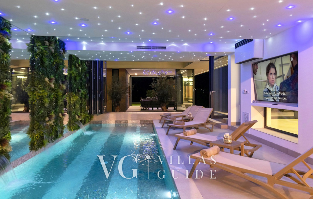 If you are part of a large group and want to spend your holiday with three or four families, we have a villa that can accommodate up to 20 people. It is located close to Makarska in the south of Dalmatia. It has eight bedrooms and eight bathrooms, plus an additional guest bathroom, two fully equipped kitchens and an outdoor kitchen. Guests can also enjoy a rooftop hot tub, a sauna, a modern gym and an indoor heated pool, which can be used in the colder months of the year.