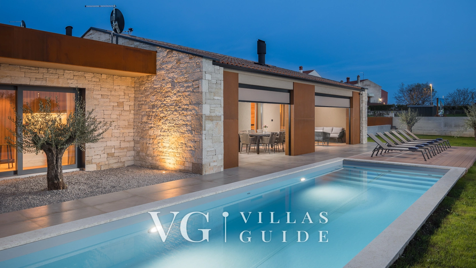 This spacious villa is located in a small village around 10 kilometres from Poreč. It can accommodate up to 10 people and boasts an outdoor pool with sun loungers, an infrared sauna and a hot tub. The villa has 5 bedrooms and 5 bathrooms, as well as a 1,000 m² garden and an outdoor seating area, offering plenty of space for evening socialising.