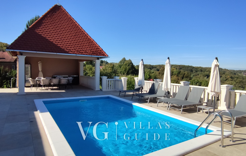 The villa consists of 2 modern houses connected by a large terrace, making it an excellent choice for large groups. Villa Berga features an intimate spa with a sauna, jacuzzi, and relaxation area. There is also a heated outdoor pool with a view of the greenery. For added comfort, the villa has a massage chair and a modern fireplace to heat the interior.