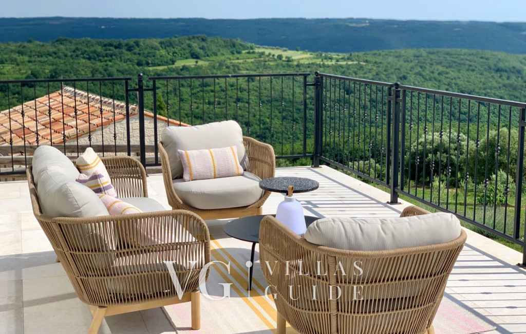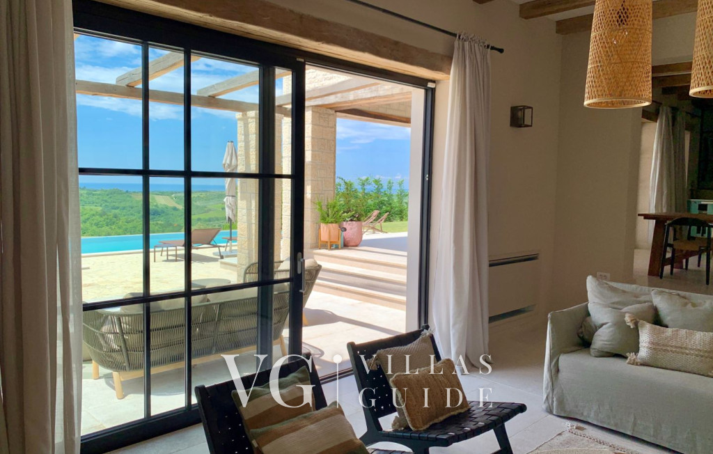Villa Picholine features a private swimming pool, a summer kitchen with a barbecue and a covered lounge set up in an intimate olive grove. The villa has a fireplace and underfloor heating for cooler days, as well as a wine corner for evening gatherings. 4 en-suite bedrooms can comfortably accommodate up to 8 guests. The peaceful location offers panoramic views of the Mirna Valley and the sea.