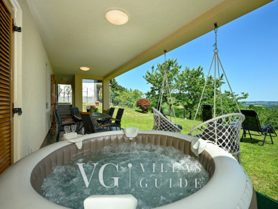 Villa Panorama Hill has a garden with a total surface of 1999 m2. The external facilities of the property include the following: Barbecue, Wood-burning grill, barbecue accessories, Covered terrace, Dining table, Lounge area.