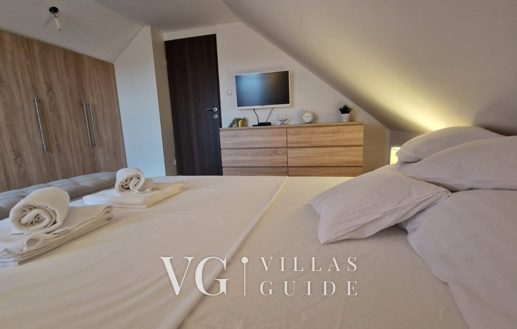 Villa Vinea has 2 bedrooms. You can see the bed setup of each bedroom within the villa information under 'Bedrooms'.