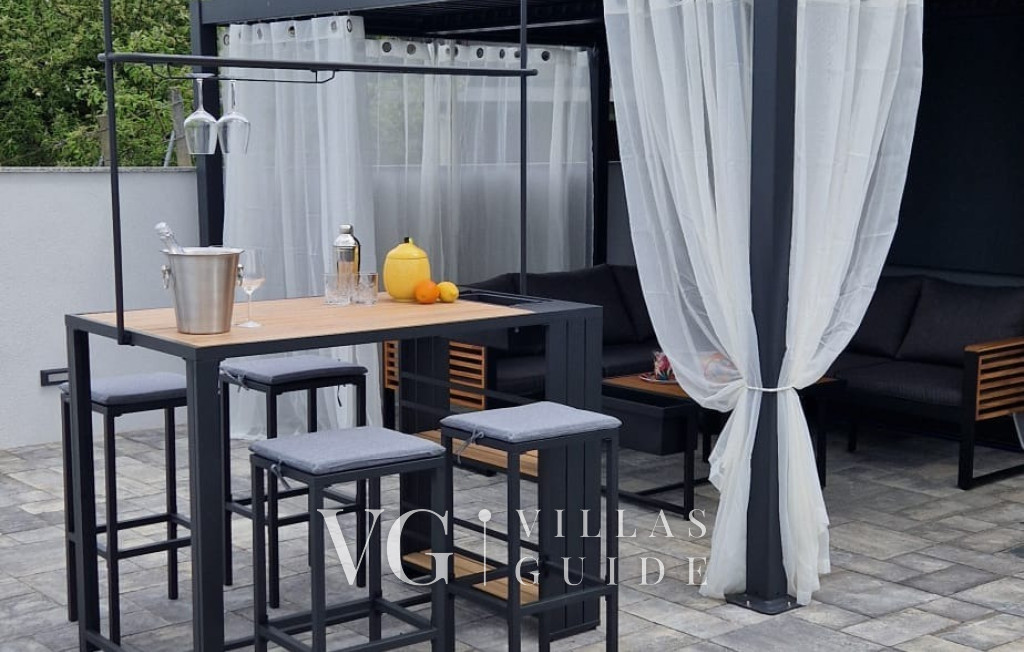 Villa Vinea has a garden with a total surface of 1500 m2. The external facilities of the property include the following: Barbecue, Wood-burning grill, barbecue accessories, Covered terrace, Dining table, Lounge area. The garden is completely fenced.