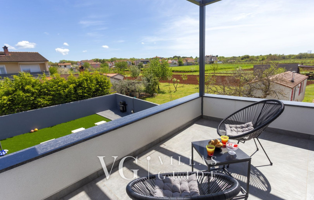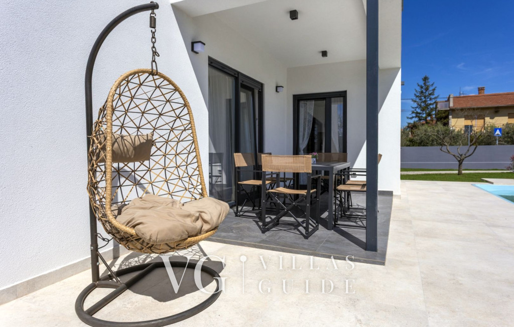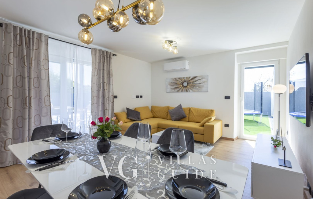 Villa Gali has a garden with a total surface of 505 m2. The external facilities of the property include the following: Barbecue, gas, barbecue accessories, Covered terrace, Dining table. The garden is completely fenced.
