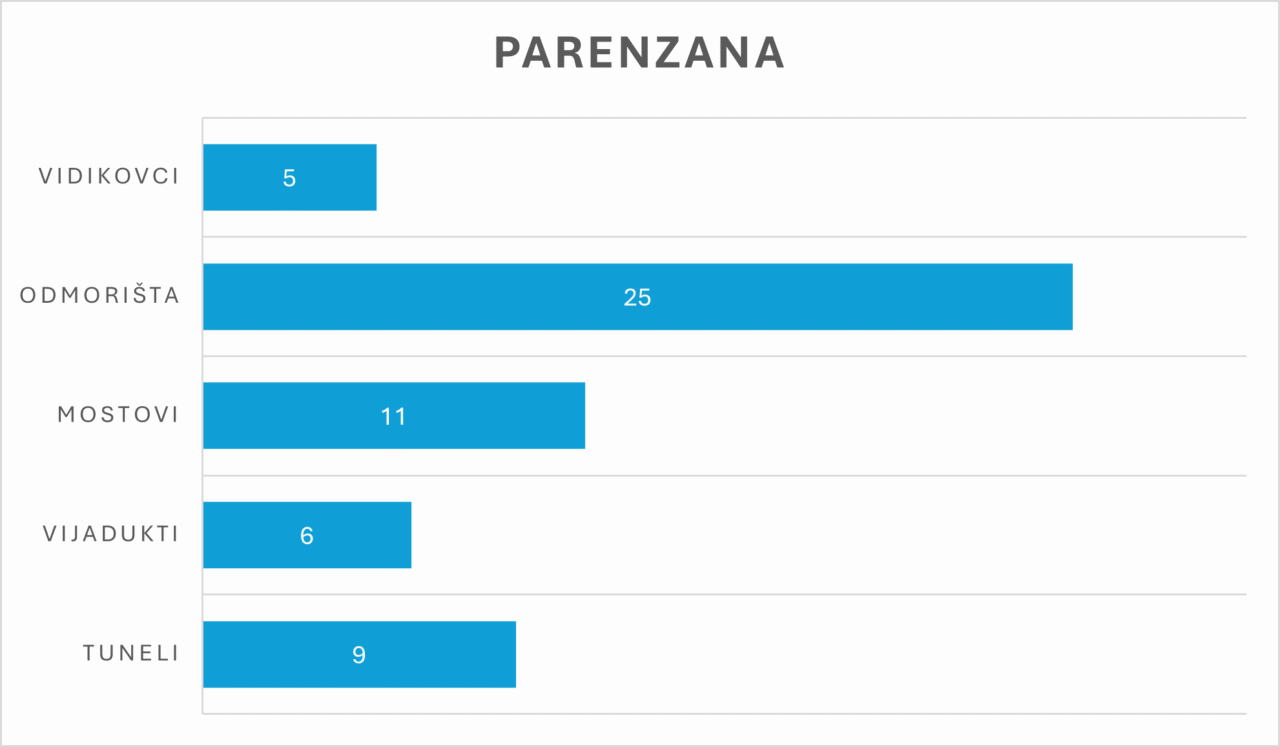 Parenzana nudi slikovite poglede istarskog ruralnog područja dok se vozite kroz vinograde i maslinike te prolazite kroz tunele i preko vijadukata. Osim toga, staza vas vozi i kroz neka zanimljiva mjesta vrijedna posjeta.