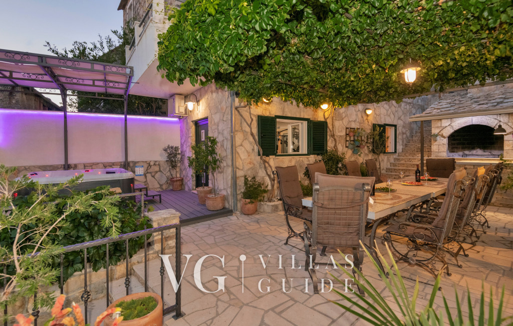 Vanjski prostor vile pruža sve za potpuni odmor i opuštanje, s više terasa na raspolaganju. Ispred vile nalazi se blagovaonski stol u prirodnoj hladovini, uz koji je smješten roštilj i ljetna kuhinja za pripremu omiljenih specijaliteta.