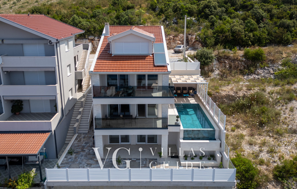 Spavaće sobe su opremljene s 5 bračnih kreveta, a kupaonice su moderno uređene. Iako vila nema balkon, prostrane sobe pružaju dovoljno prostora za udoban boravak. Gostima su na raspolaganju perilica rublja.