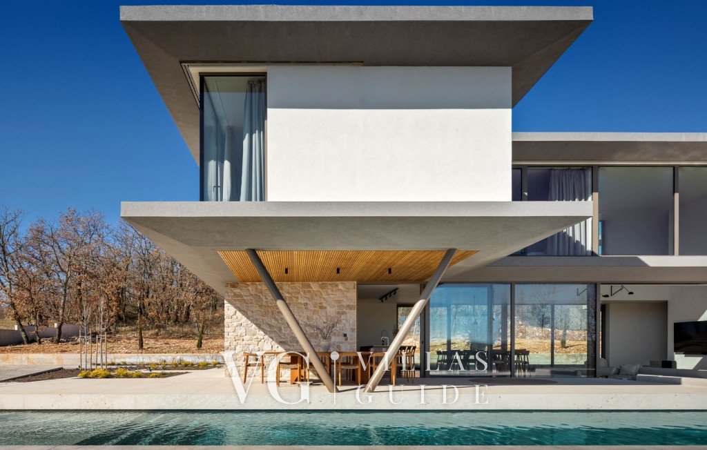La Villa bOX si trova nel cuore dell’Istria, vicino a Pisino. Si distingue per la sua architettura moderna e minimalista che si fonde perfettamente con il verde circostante. La villa dispone di aree benessere interne ed esterne con piscina riscaldata, jacuzzi e sauna turca. Con una capienza fino a 14 persone, è ideale per gruppi numerosi.