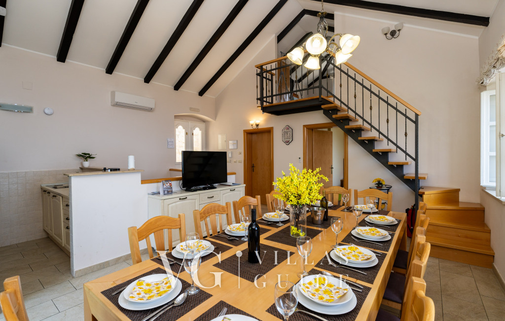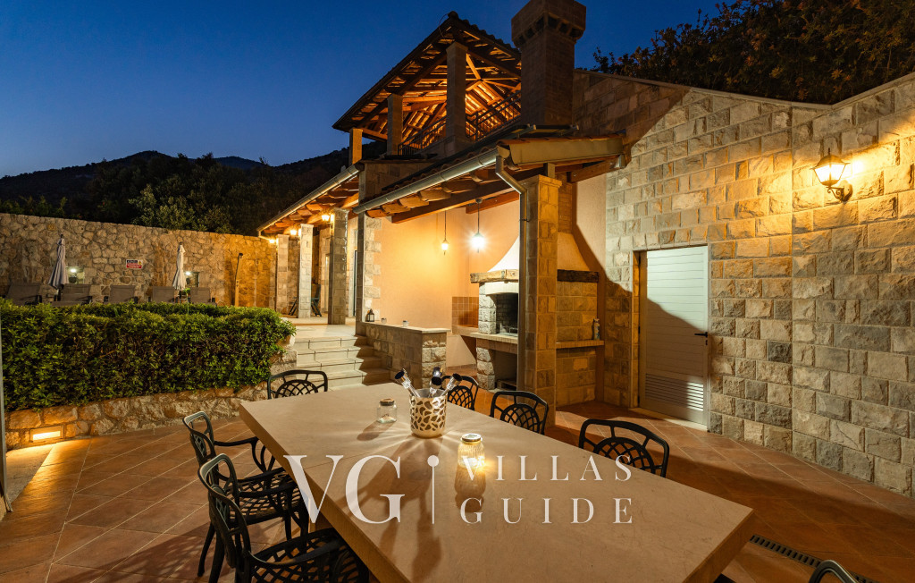 Villa Dia ha un giardino con una superficie totale di 3600. Le strutture esterne della proprietà includono quanto segue: Aggiuntivo, Grill a legna, Grill a carbone, Legna da fuoco disponibile, accessori per barbecue, Terrazza coperta, Tavolo da pranzo, Area lounge, WC.