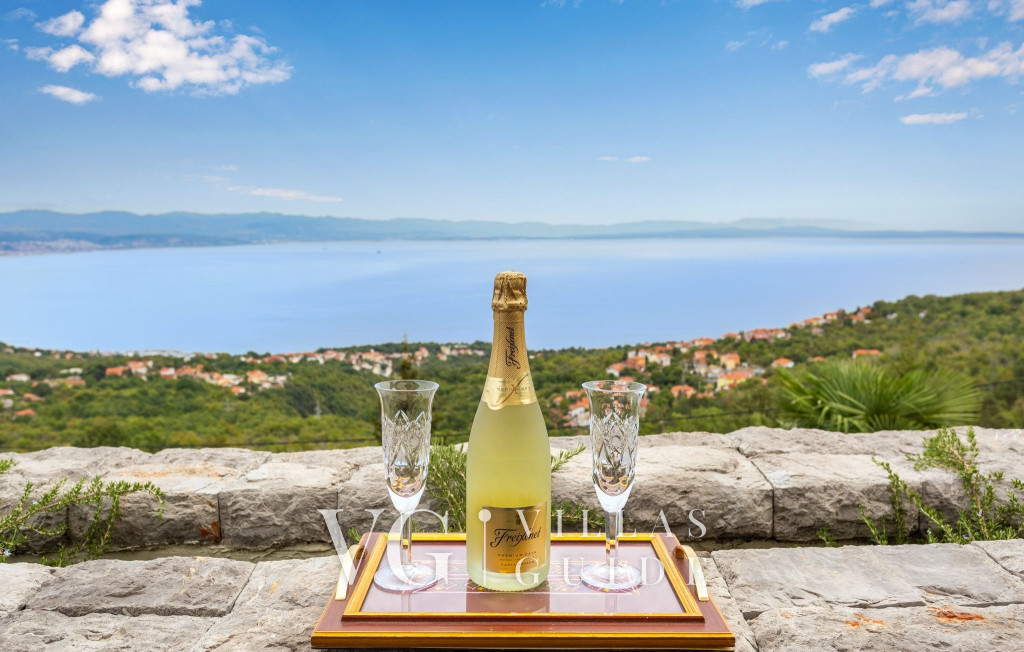 Villa View Kvarner - Opatija ha un giardino con una superficie totale di 800. Le strutture esterne della proprietà includono quanto segue: Cucina estiva, Aggiuntivo, Grill a legna, Grill a carbone, accessori per barbecue, Terrazza coperta, Tavolo da pranzo, Area lounge.